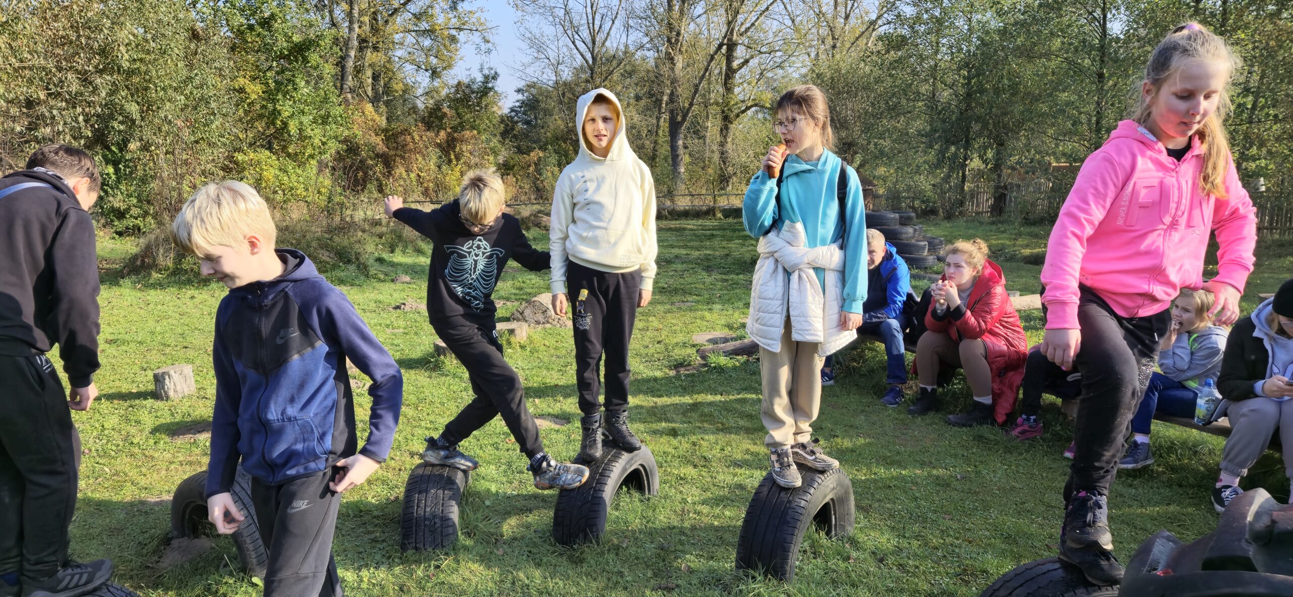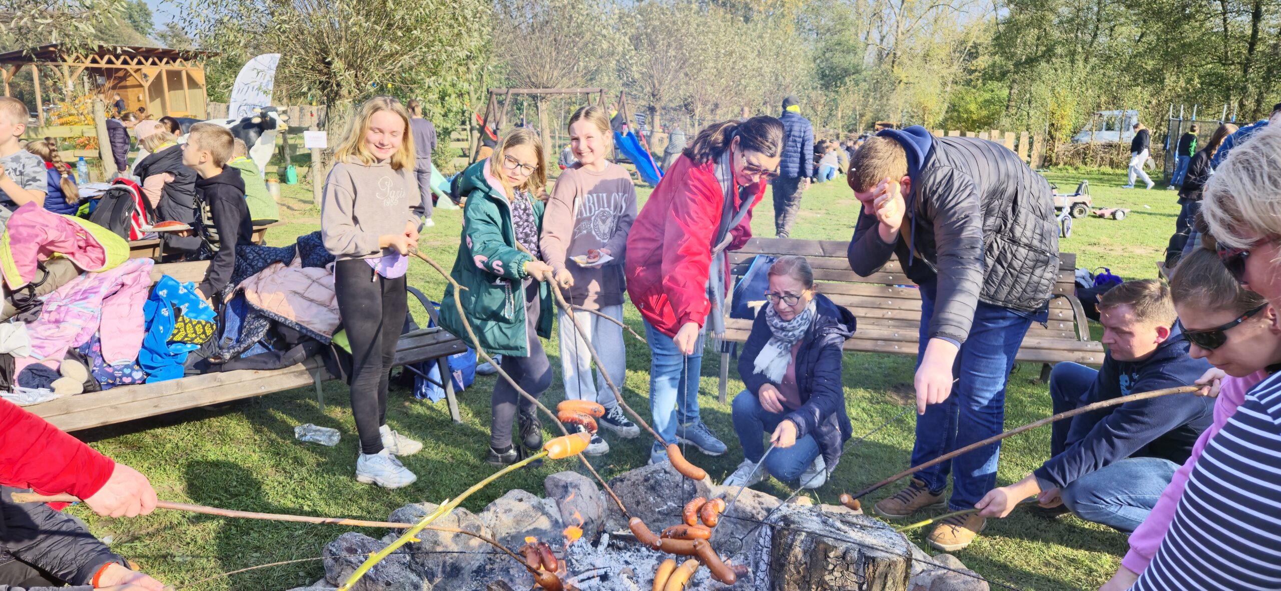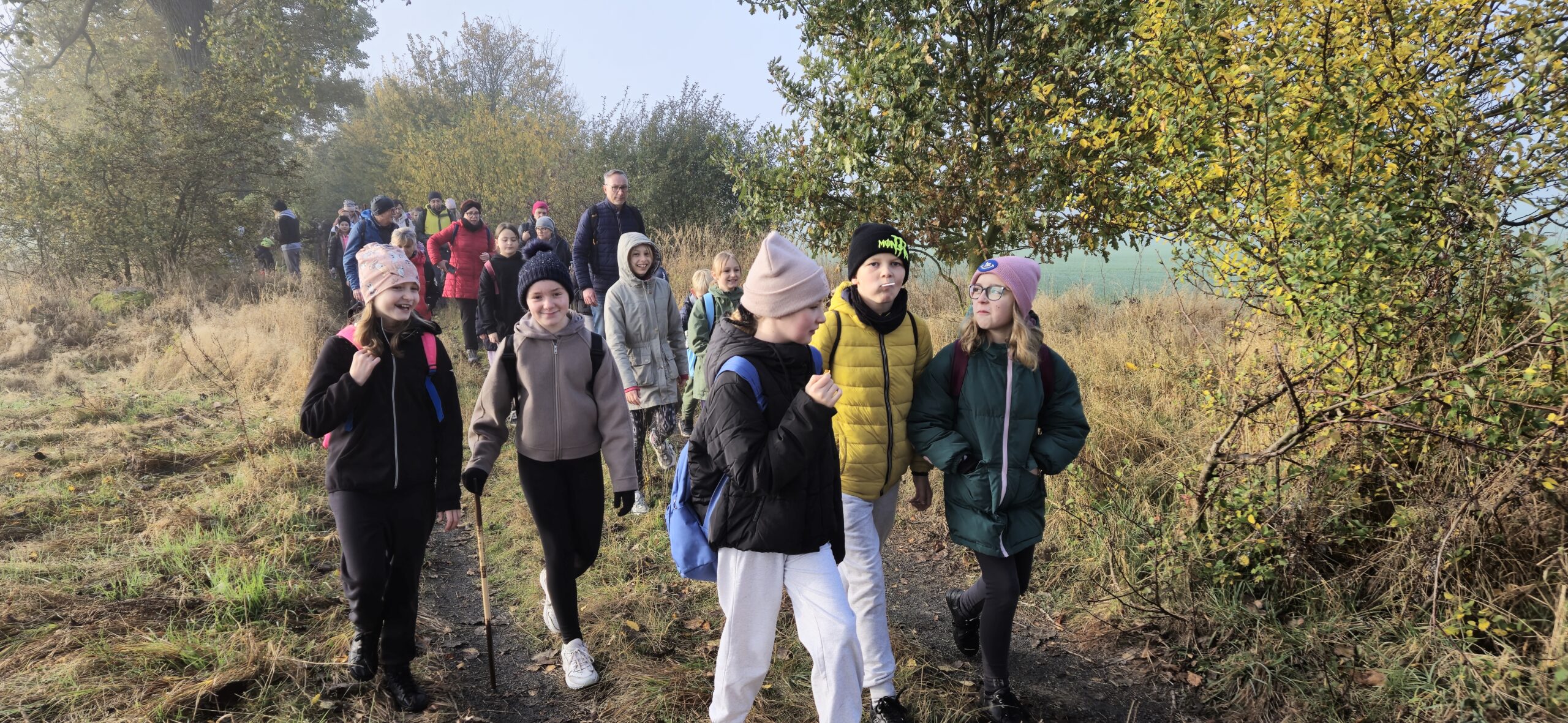 26.10.2024 r. uczestniczyliśmy w Rajdzie na „Pieczonego Ziemniaka”. Na dworcu PKP w Stargardzie zebraliśmy się wczesnym rankiem, by ruszyć pociągiem do Ulikowa – małej i spokojnej wioski, z której pieszo udaliśmy się do gospodarstwa „Agrodolinka” w Gogolewie. 10-kilometrowa trasa naszej wędrówki wiodła urokliwymi polnymi ścieżkami. Podziwialiśmy piękno jesiennych krajobrazów – różnokolorowe liście i opadające mgły w październikowym słońcu. Po dotarciu na miejsce odpoczynku czekała na nas moc atrakcji – ognisko, nad którym piekliśmy kiełbaski, plac zabaw, a nawet trampolina. Niektórzy karmili zwierzęta w zagrodzie – owce, kozy i kaczki. Czas szybko upłynął na zabawach. Do Stargardu wróciliśmy pociągiem zgodnie z planem.