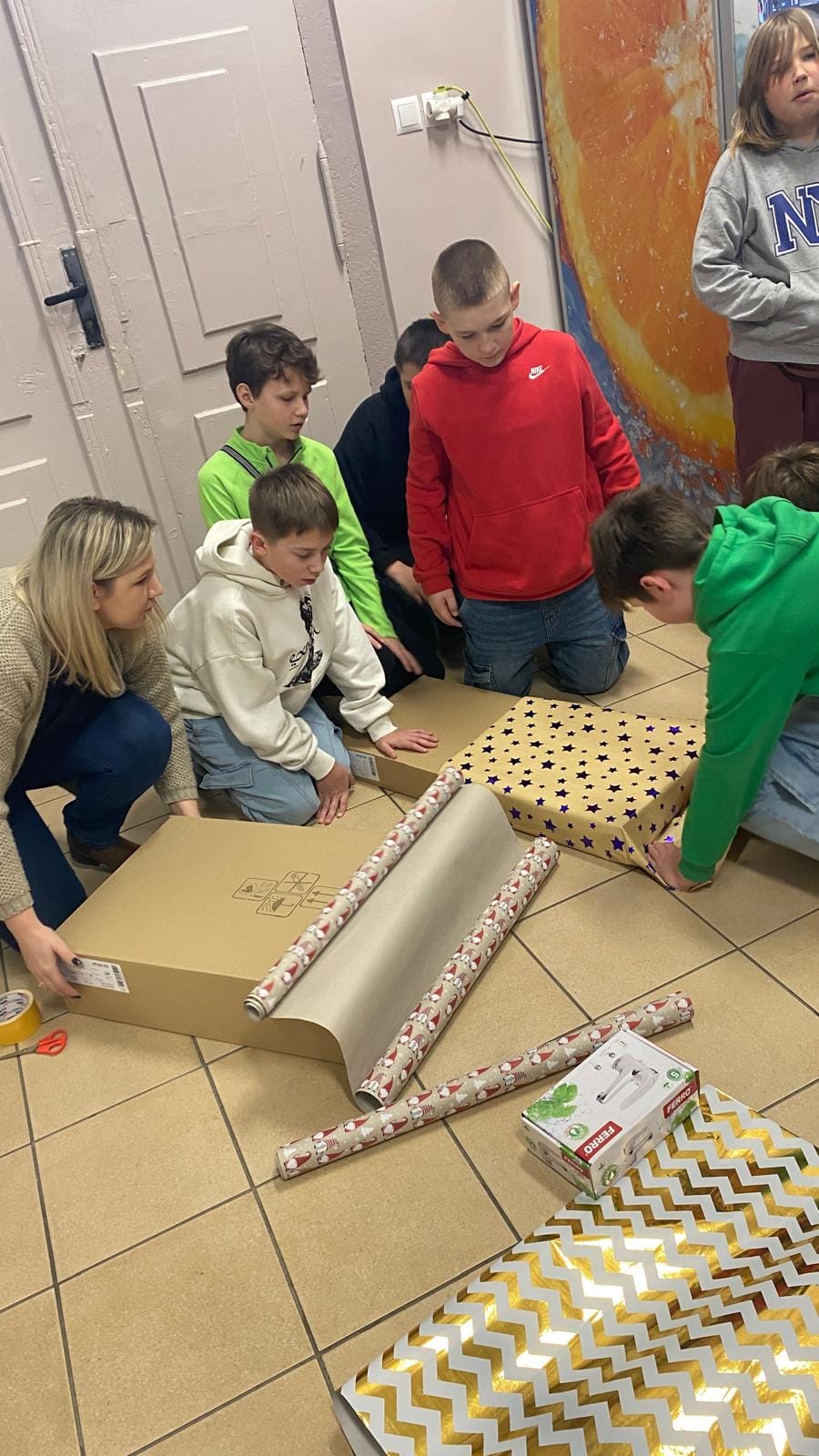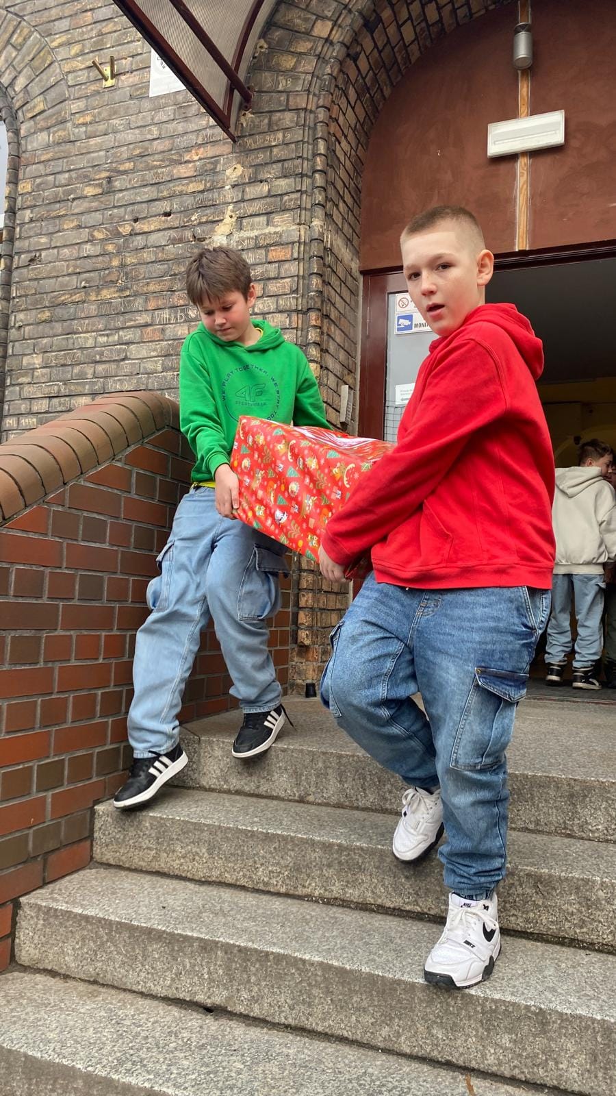 W „Weekend Cudów” w sobotę 14 grudnia 2024r. wspólnie z Panią Kamilą Baran, nauczycielką edukacji wczesnoszkolnej oraz firmą „Łozo Wozi” -gotowe, zakodowane paczki przekazaliśmy do magazynu zlokalizowanego w Hali sportowej przy szkole podstawowej im. Adama Mickiewicza w Tychowie.