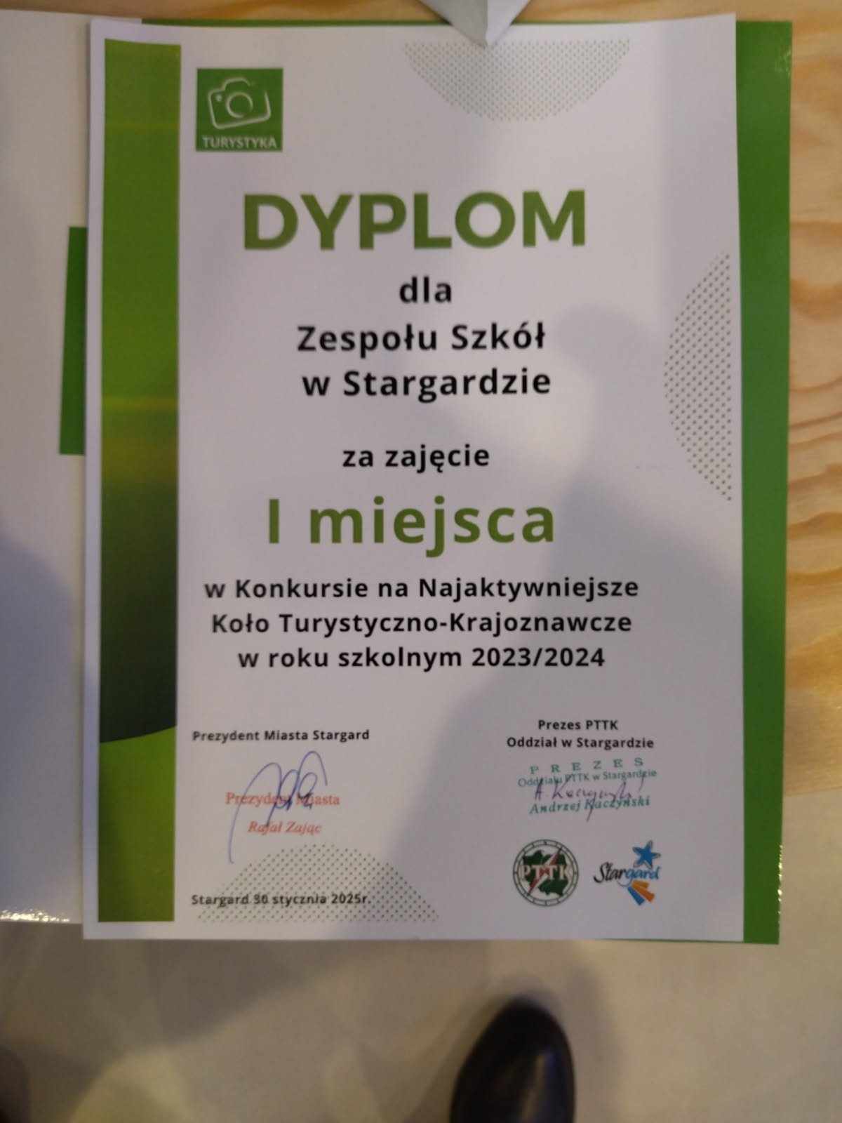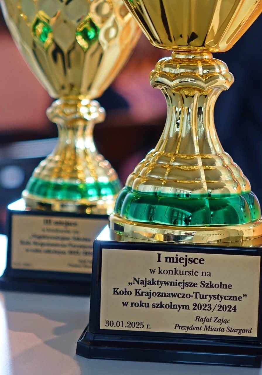 Tak, to My – zdobywcy I miejsca najaktywniejszego Szkolnego Koła Turystyczno-Krajoznawczego w roku szkolnym 2023/2024. Przez cały rok szkolny uczestniczyliśmy w tematycznych rajdach. Poznawaliśmy bliższą i dalszą okolicę, spędzając czas w gronie rówieśników i zyskując ciekawą wiedzę. Organizatorem corocznego konkursu jest stargardzki oddział Polskiego Towarzystwa Turystyczno-Krajoznawczego we współpracy z miastem. Nie dość, że rajdy sprawiają nam wielką frajdę i chętnie w nich uczestniczymy, to zdobyliśmy laury! Super nagrody. Wszyscy otrzymaliśmy kompasy, puchar i dyplom dla szkoły i łakocie.
