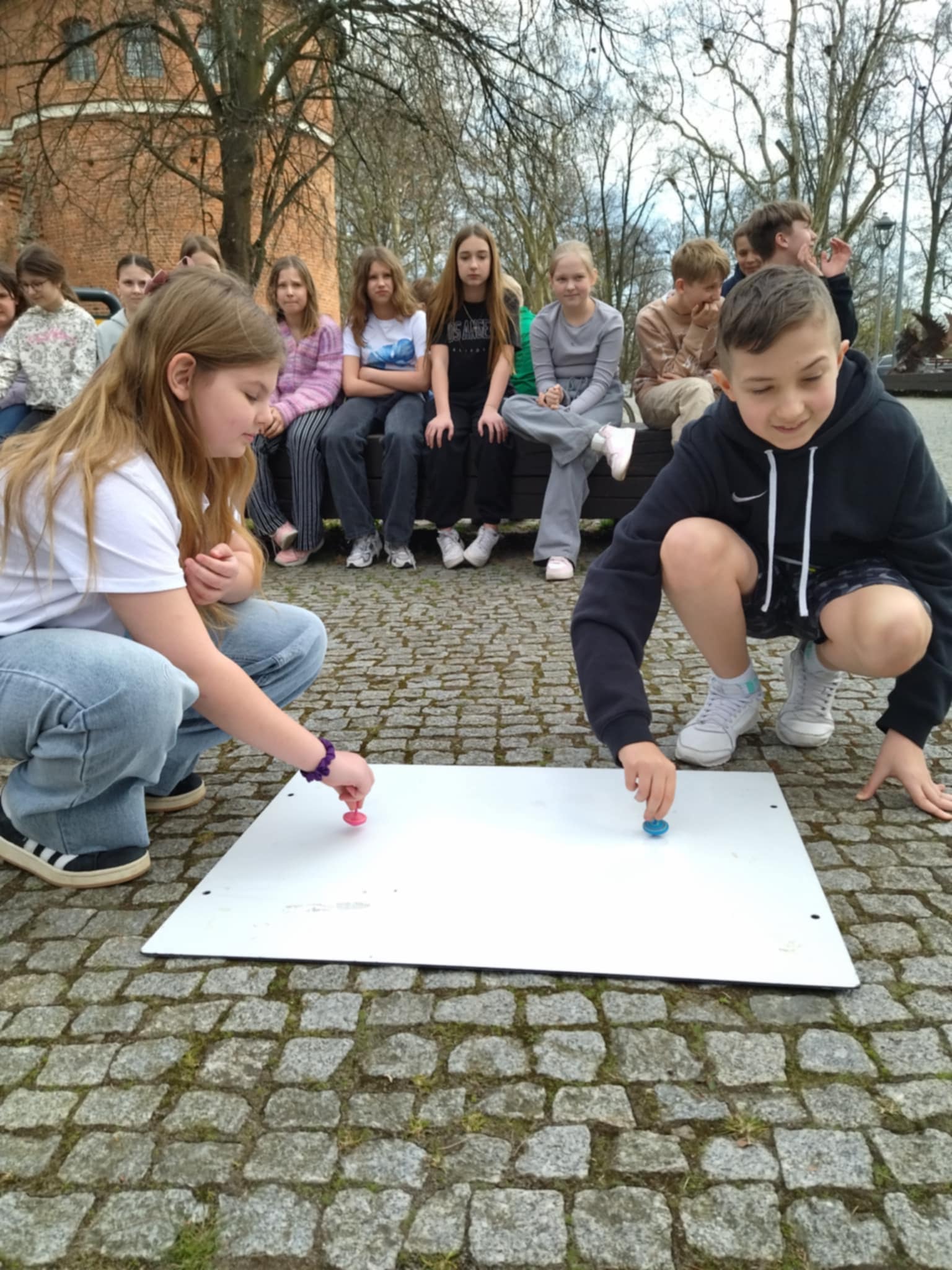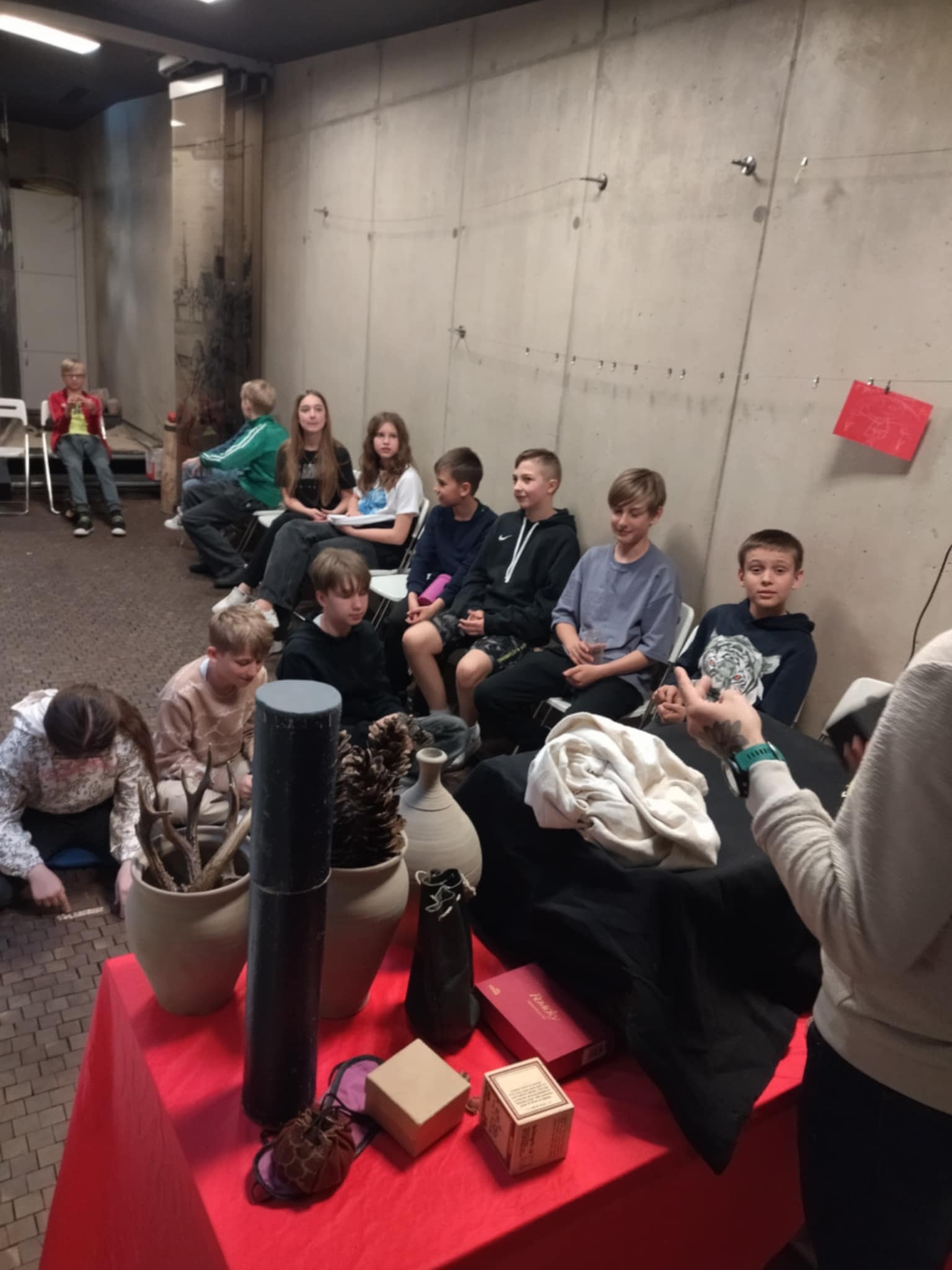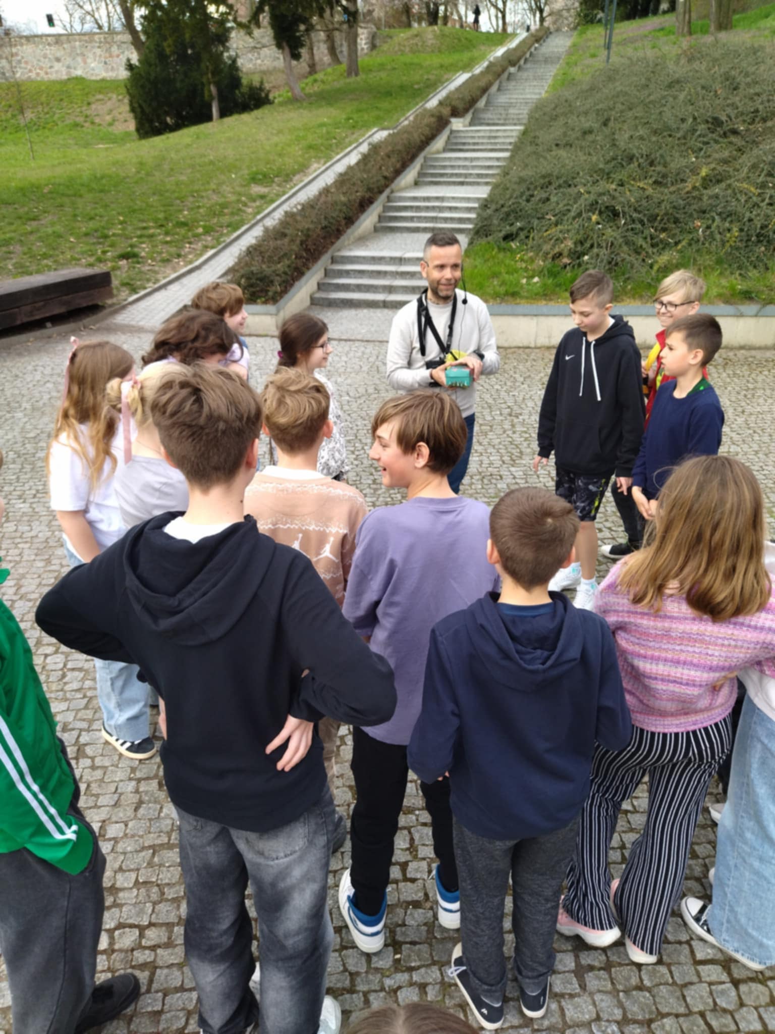Uczniowie klasy 5 a udali się z wizytą do Muzeum Archeologiczno-Historycznego „Basteja” na zajęcia warsztatowe pt. „RYNECZEK HANZY” prowadzone przez Pana Przemysława Antczaka. Dzieci przenosząc się w czasy późnego średniowiecza, zdobywały nie tylko wiedzę historyczną, ale też uczyły się przedsiębiorczości, negocjowania i zgodnej współpracy. Podczas licytacji mogli kupić, sprzedać lub pozyskać w inny sposób różne towary – przyprawy, tkaniny, zboże. Miło było obserwować ich operatywność, pomysłowość, zaangażowanie i zgodną współpracę.