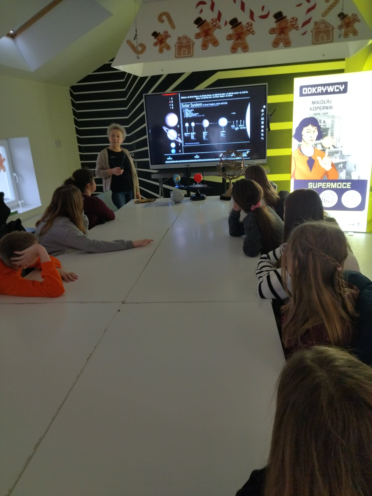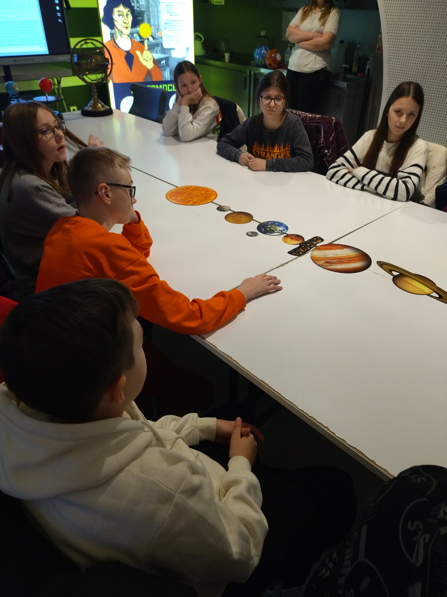 Nasza klasa 6a wzięła udział w zajęciach z cyklu Odkrywcy 2025, które odbyły się w Filarach w Stargardzie. Tematem spotkania była astronomia oraz życie i dokonania Mikołaja Kopernika. Podczas zajęć dowiedzieliśmy się, jak wygląda budowa Układu Słonecznego, jakie odkrycia Kopernika zmieniły sposób postrzegania Wszechświata oraz jak rozwijała się nauka o kosmosie na przestrzeni lat. Uczniowie brali udział w ciekawych doświadczeniach i interaktywnych prezentacjach, które w przystępny sposób wyjaśniały złożone zjawiska astronomiczne. Wyjście było bardzo interesujące i inspirujące. Dzięki zajęciom poszerzyliśmy naszą wiedzę o kosmosie, a także lepiej poznaliśmy postać jednego z najwybitniejszych polskich naukowców.