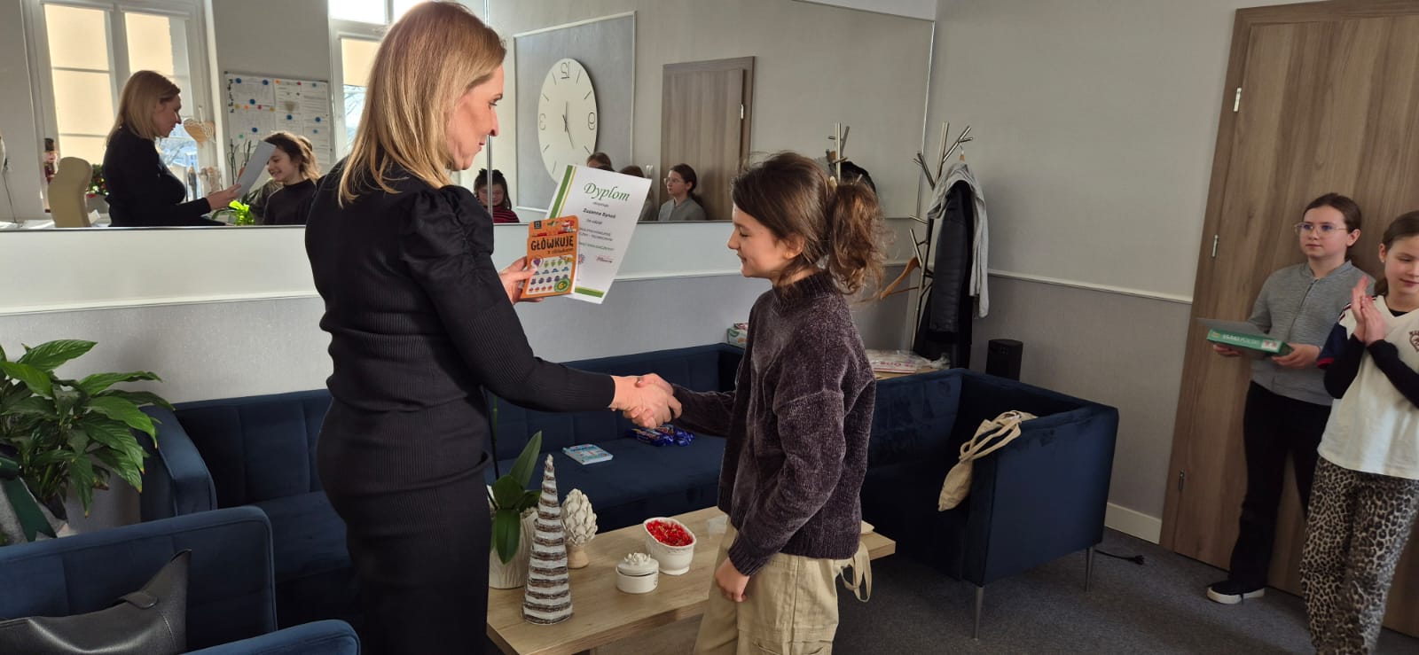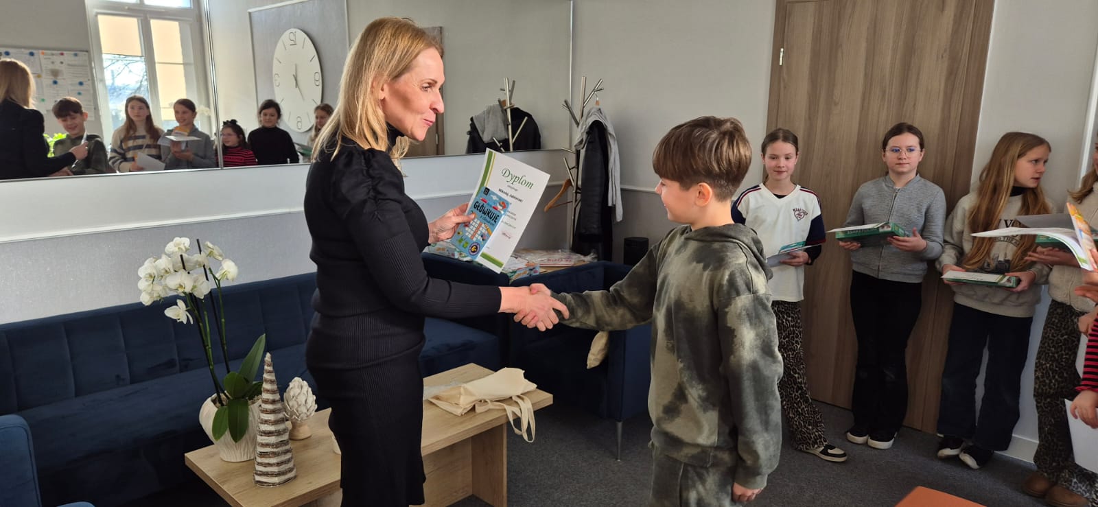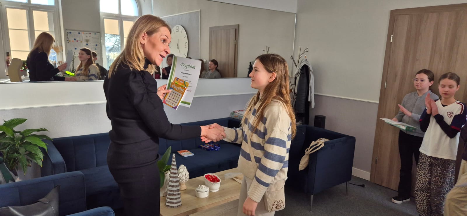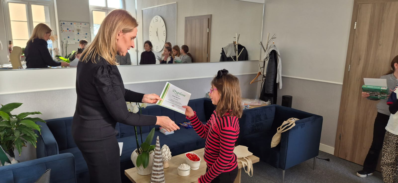 Pani Dyrektor wyróżniła i nagrodziła również pozostałych uczestników konkursu: Zuzię Synoś, Esterę Kempińską, Alę Toflińską, Mikołaja Jabłońskiego, Apolonię Błoch oraz Zosię Monicę.