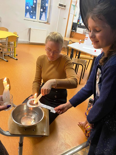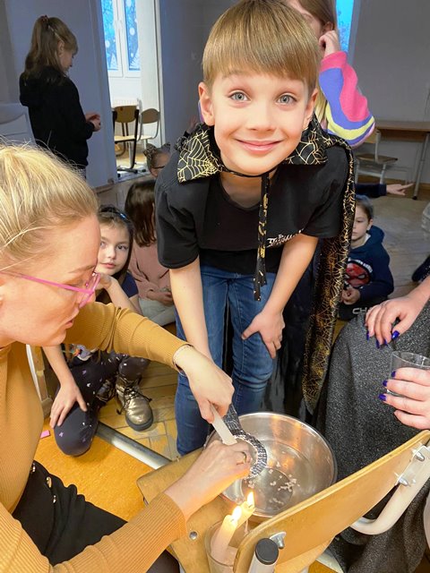 Andrzejki to jedna z najbardziej tajemniczych nocy w roku, kiedy to staramy się uchylić rąbka tajemnicy dotyczącej naszej przyszłości. Pomysłów na poznanie przyszłości jest bardzo wiele. Jednak najpopularniejszym obrzędem andrzejkowym, który wykorzystujemy podczas wieczoru wróżb, jest lanie wosku. W naszej świetlicy dzieci również przelewały wosk, wróżyły z kubków i gotowały magiczny wywar z czarownicą. W tym roku wróżby przygotowała Antonina Bodys z klasy IIIOSM, a Amelia Miziołek z klasy IIOSM uczyła dzieci w tańcu jak prać jeansy. Cały wieczór był pełen tajemnic, śmiechu i zabawy.