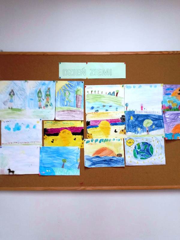 Dzień Ziemi obchodzony jest 22 kwietnia na całym świecie. Celem wydarzenia jest szerzenie wiedzy związanej z ekologią i zmianami klimatycznymi, a także promocja postaw, oraz działań nastawionych na ochronę środowiska naturalnego. W tym dniu pochylamy się nad losem naszej planety, jednocześnie prezentując, jaka jest piękna, fascynująca, ciekawa, różnorodna, ważna. Uczniowie w świetlicy za pomocą prac plastycznych przekazali przesłanie, jak ziemia wygląda dziś i jak może wyglądać za parę lat.