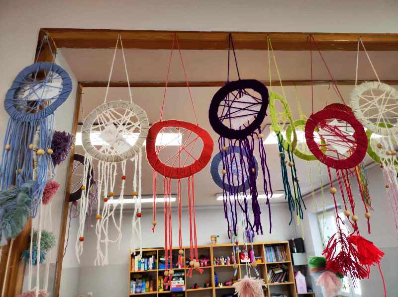 Łapacz snów ze względu na swoją historię i pochodzenie jest symbolem jedności. Ważne jest znaczenie poszczególnych elementów łapacza snów: – Obręcz – symbolizuje krąg życia, – Sieć – służy do zatrzymania złych snów, – Pióra – dzięki nim dobre sny niejako „spływają” do śpiącej osoby, -Koraliki i kamyki – mają pomóc spełnić sny śpiącej osoby. Dzieci w naszej świetlicy miały możliwość wykonania własnych łapaczy snów. Tak wygląda efekt ich pracy.